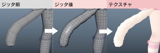 モコモコな猫耳と尻尾をポリゴンにジッターを加えることで極力表現しました。